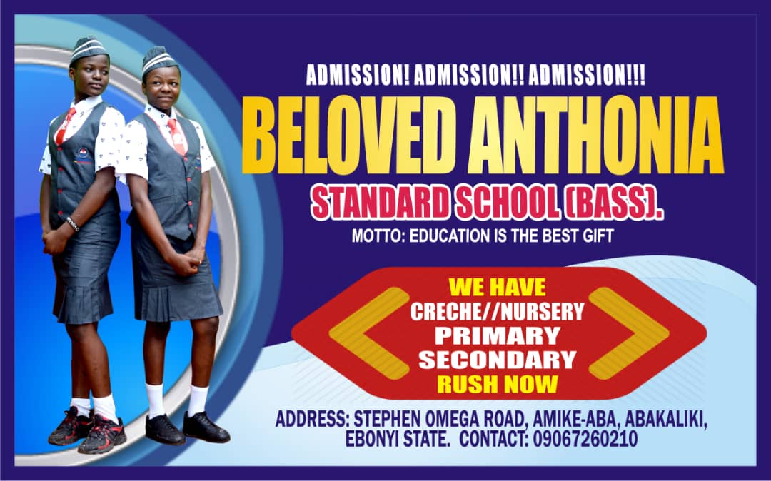 Beloved Anthonia Standard School is a school like no other. When you try Beloved Anthonia School you... Continue